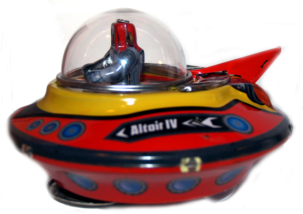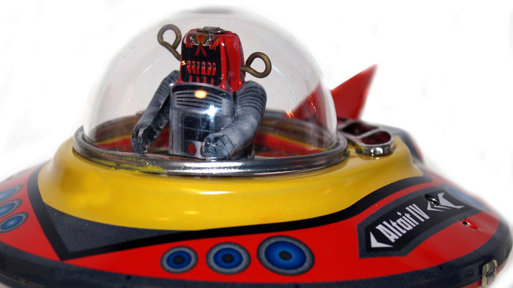 Robot Altair IV Flying Saucer Windup Gyro Crank Action Tin Collectors Edition - SALE!