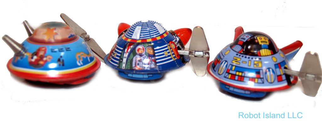 Flying Saucer Tin Windup Set of 3 Space Toys
